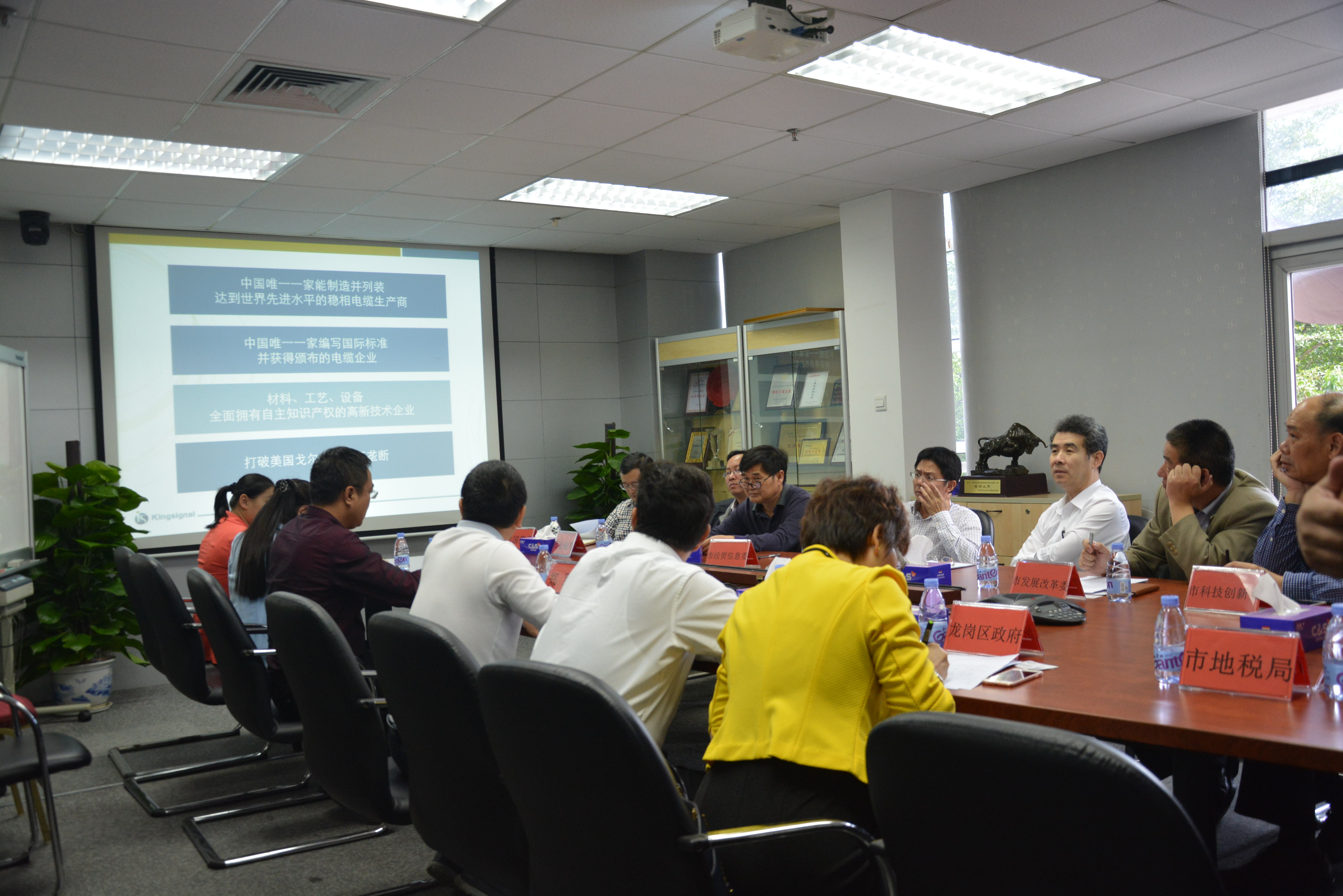 2015年11月2日下午2點,深圳市劉慶生副市長攜市發(fā)展改革委儲懷濤處長、市經(jīng)貿(mào)信息委董韋華副處長、市科技創(chuàng)新委徐曉峰處長、市教育局黎勇主任、市金融辦林志鍇副處長、市國資委李春亞副處長、市住房建設(shè)局馬道之處長、市地稅局楊龍副處長、南山區(qū)政府王東副處長、龍崗區(qū)政府馮艷虹副處長、市人力資源保障局和市規(guī)劃國土委一行人來深圳金信諾高新技術(shù)股份有限公司進(jìn)行掛點服務(wù)。主要了解一下金信諾集團情況,也就金信諾集團現(xiàn)階段遇到的一些問題進(jìn)行答疑解惑,金信諾集團董事長黃昌華先生、金信諾集團總經(jīng)理鄭軍先生、金信諾集團董秘兼戰(zhàn)略發(fā)展部總監(jiān)伍婧娉女士、金信諾集團總經(jīng)辦主任趙瑩瑩女士、金信諾集團財務(wù)主管羅端麗女士等人進(jìn)行了接待。