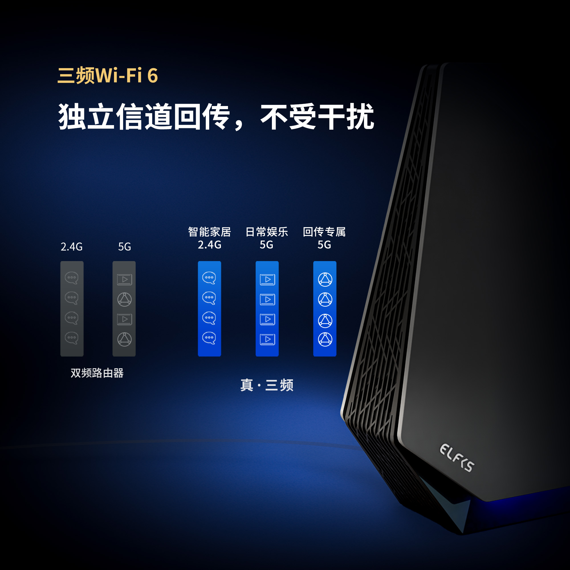 2、真三頻回傳Mesh技術