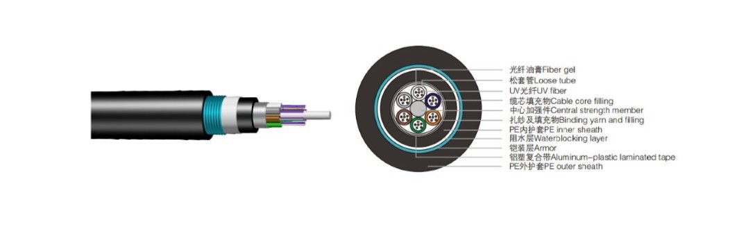 • 護(hù)套可用低煙無鹵阻燃材料生產(chǎn)(此時(shí)型號為GYTZA53)。