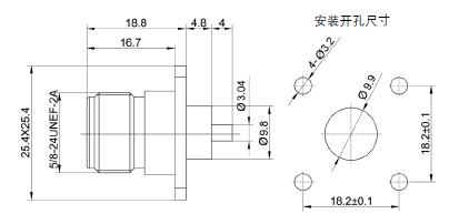 | 頻率范圍 | DC~18GHz | 插孔 | 鈹青銅 | 鍍金 | ||