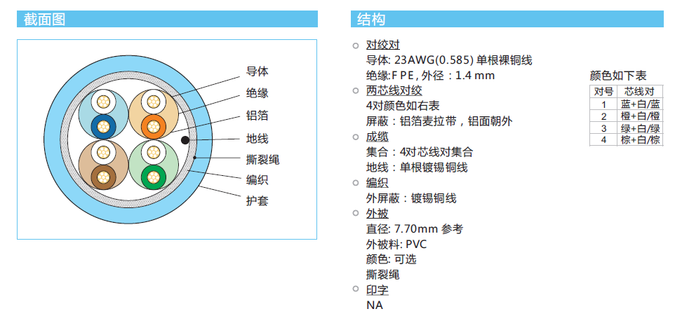 參考標準:UL444,EIA/TIA 568B.2-1,ISO/IEC