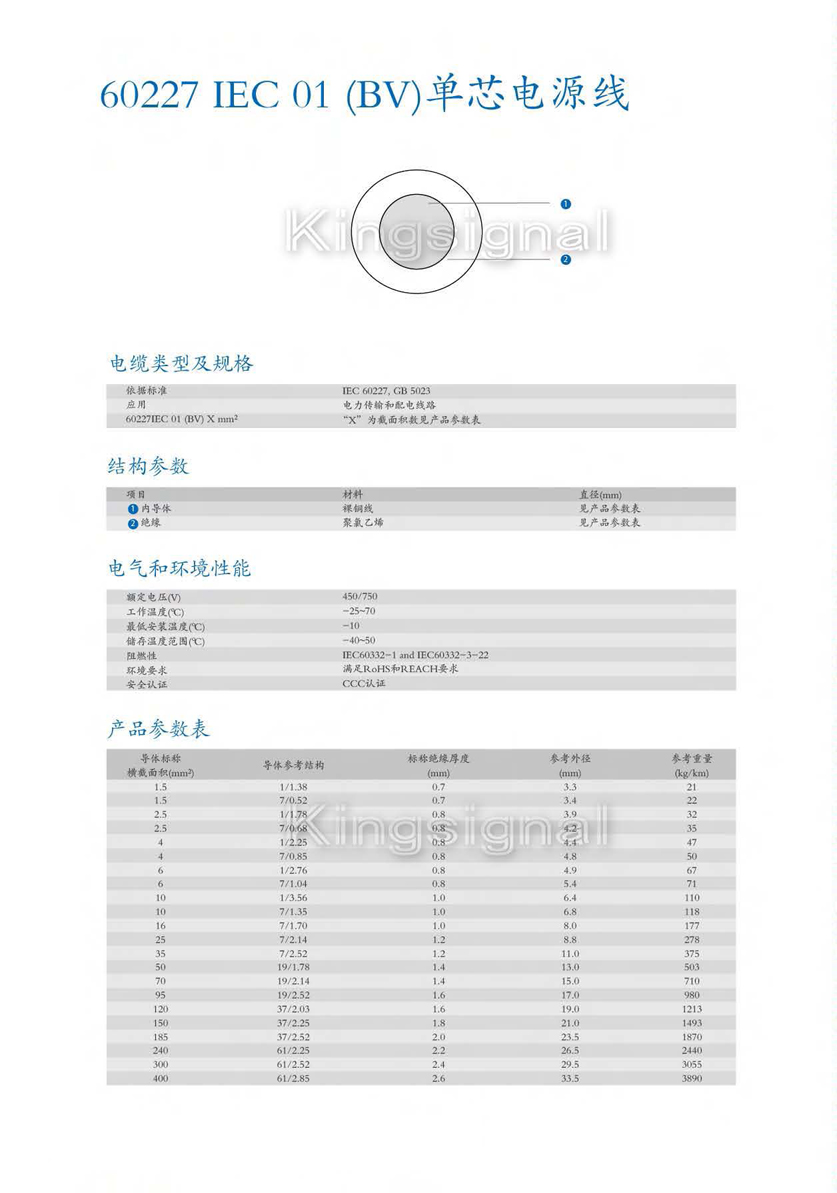 - · 60227 IEC 07(BV-90)單芯通信電源線