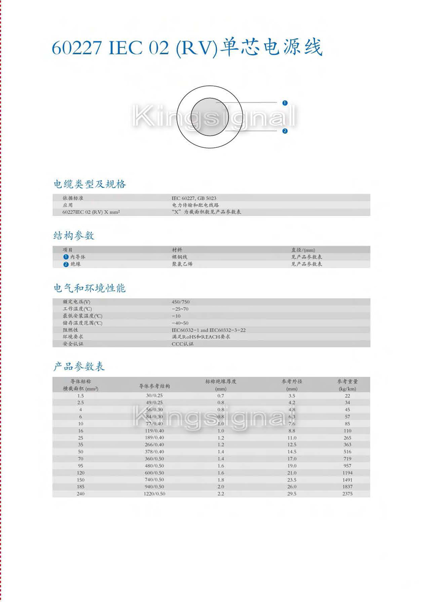 - · 60227 IEC 02(RV)單芯通信電源線