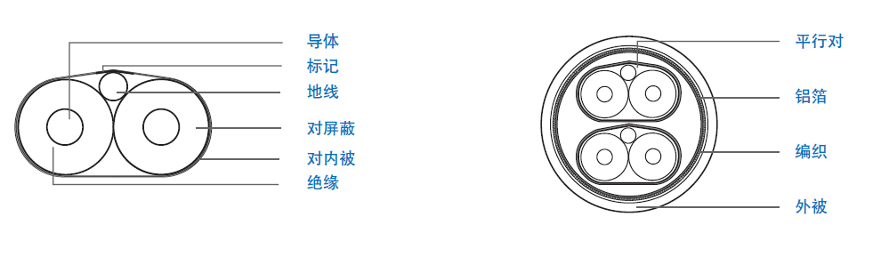 | 地線:32 AWG 單根鍍錫銅線, 外徑0.203 mm | 外屏蔽:38 AWG 鍍錫導體,重疊率 80% |