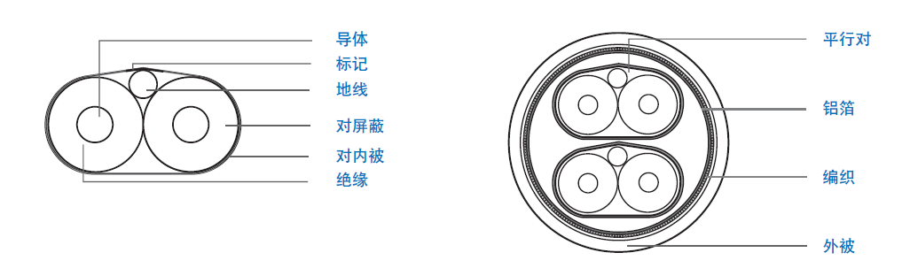 | 導(dǎo)體:24 AWG 單根鍍銀銅線, 外徑0.508 mm | 外屏蔽:38 AWG 鍍錫導(dǎo)體,重疊率 80% |