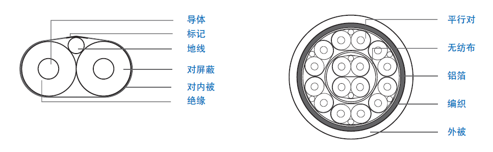 | 地線:26 AWG 單根鍍錫銅線, 外徑0.404 mm | 外屏蔽:36 AWG 鍍錫導體,重疊率 80% |