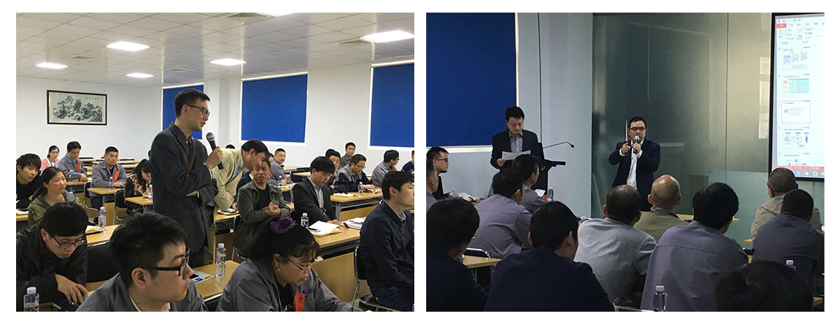 接下來是提問環節,常州安泰諾和常州金信諾的同事們紛紛的提出了自己的疑惑與問題,例如常州安泰諾副廠長付寶金關于調薪制度的問題,常州金信諾財務總監徐亞飛關于績效獎金的評價和發放標準的問題,常州安泰諾財務總監張小軍關于當前情況下信息化建設的顆粒度不足的問題等,黃總和余總都一一的為他們進行了答疑解惑。